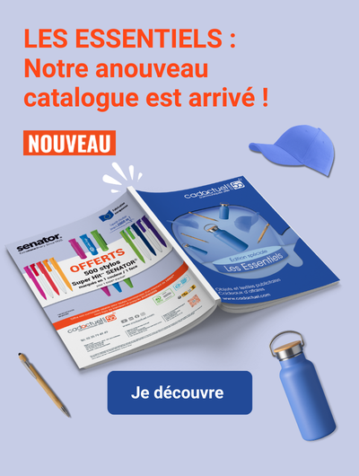 Découvrez notre édition spéciale Les Essentiels 2026 d'objets et textiles publicitaires = profitez-en pour faire le plein d'idées ! Notre catalogue calendriers & agendas est aussi en ligne. Pour tout savoir de CADACTUEL, feuilletez notre plaquette institutionnelle ainsi que notre rapport RSE.