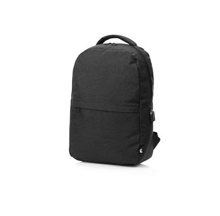 Établir un devisSac à dos publicitaire NAHNA en polyester 600D et PET recyclé. Compartiment principal avec double zip et pochette avant zippée. Comprend une connexion USB pour pouvoir charger des appareils mobiles (câble inclus, batterie non incluse). Compartiment intérieur matelassé pour ordinateur jusqu’à 15 pouces. Coins renforcés. Dos et bretelles réglables matelassés. Poignée de transport.