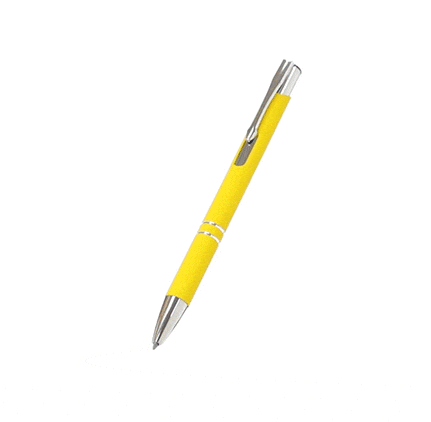 Établir un devisCe stylo personnalisé a un corps en aluminium et finition toucher soft. Attributs en métal chromé. Ecriture bleue.